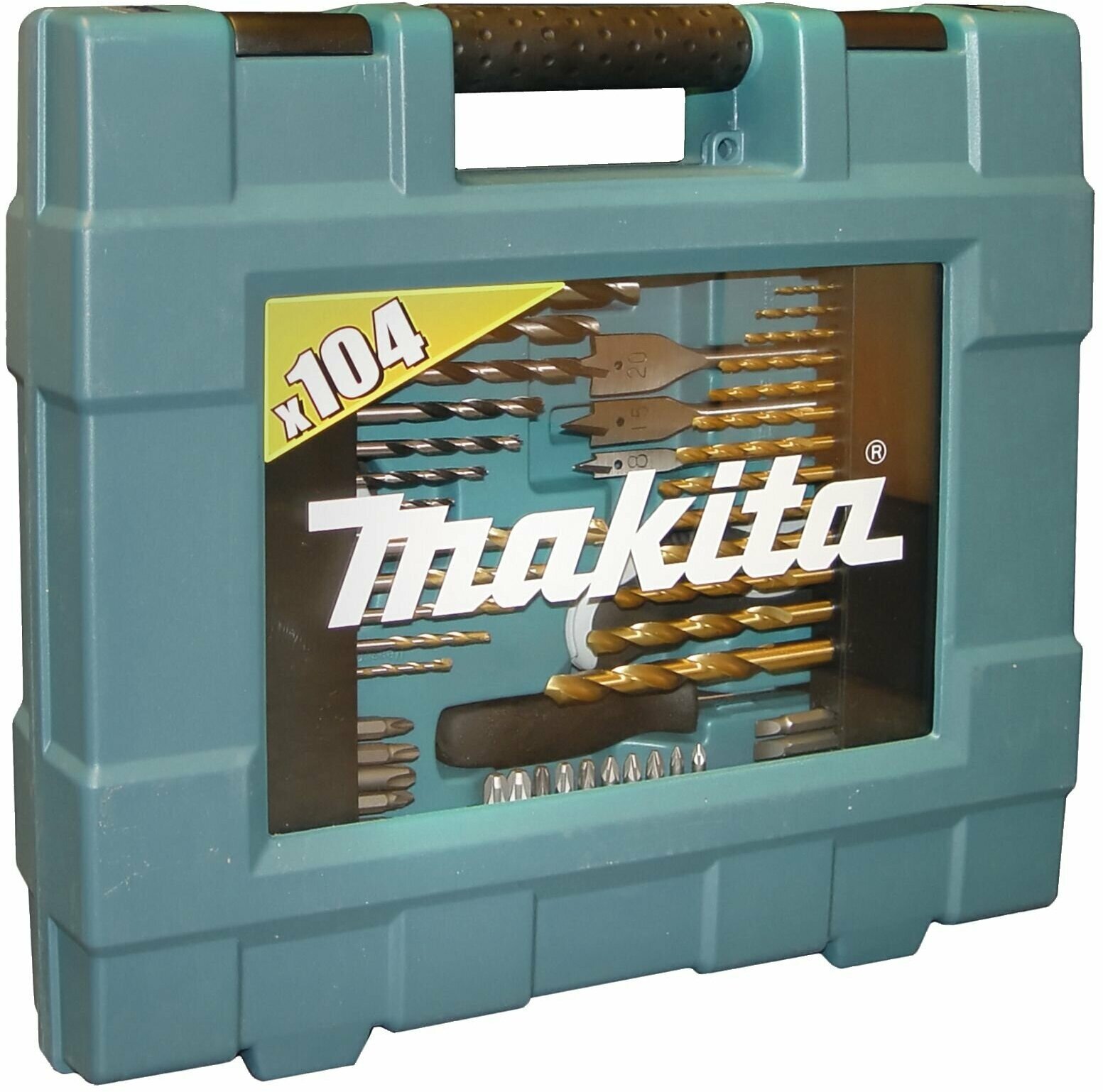 Удобный чемоданчик с большим набором насадок для дрелей, перфораторов, шуруповертов и винтовертов, а также с ручными инструментами общего назначения – отверткой, уровнем, рулеткой, ножом и пр. Всего в количестве 104 ед. Весь инструмент прочен, надежен и чрезвычайно эффективен в работе. Рекомендован для профессионального использования.