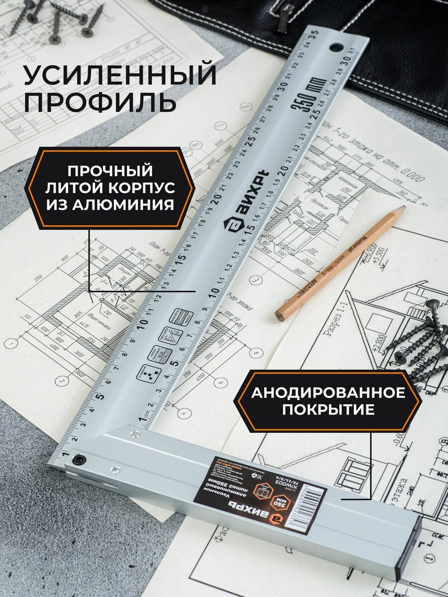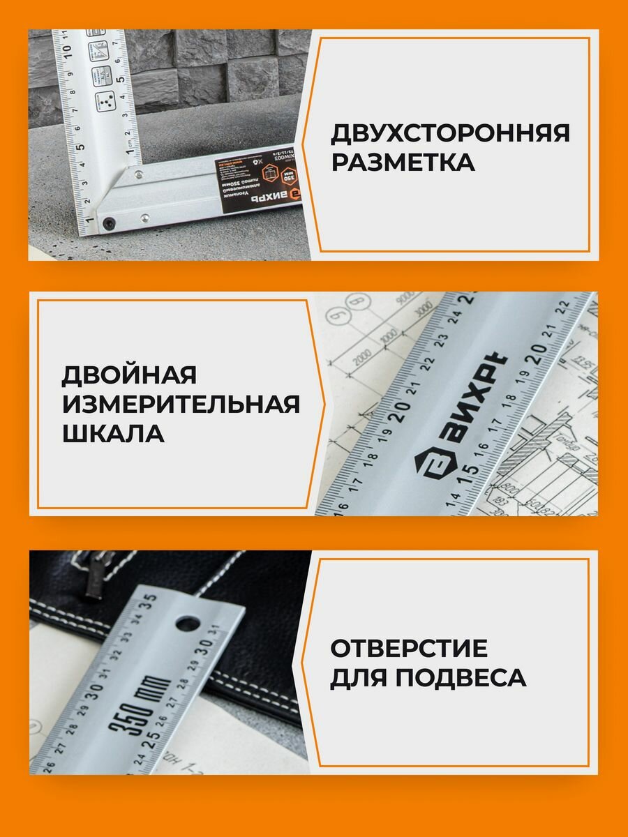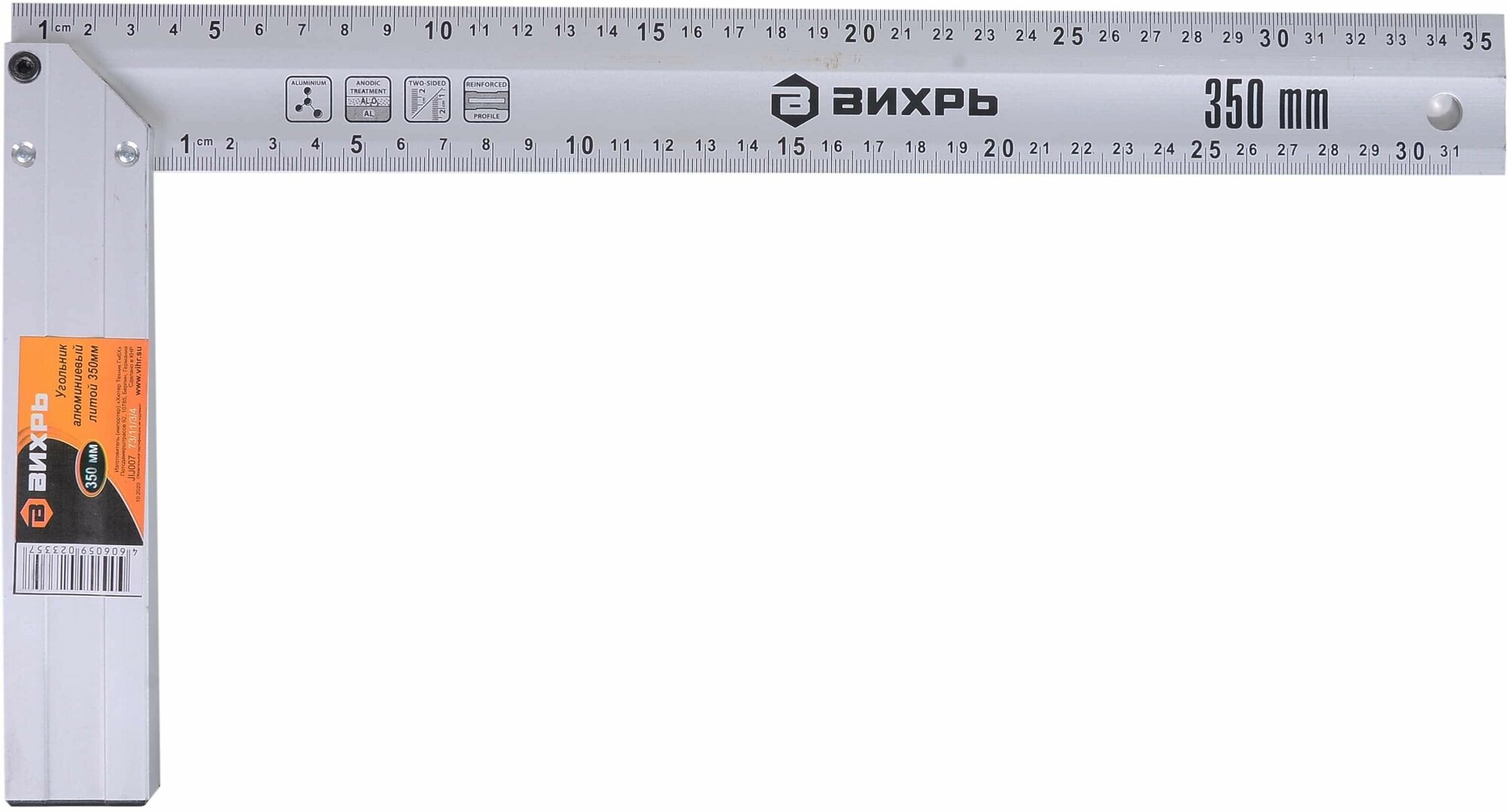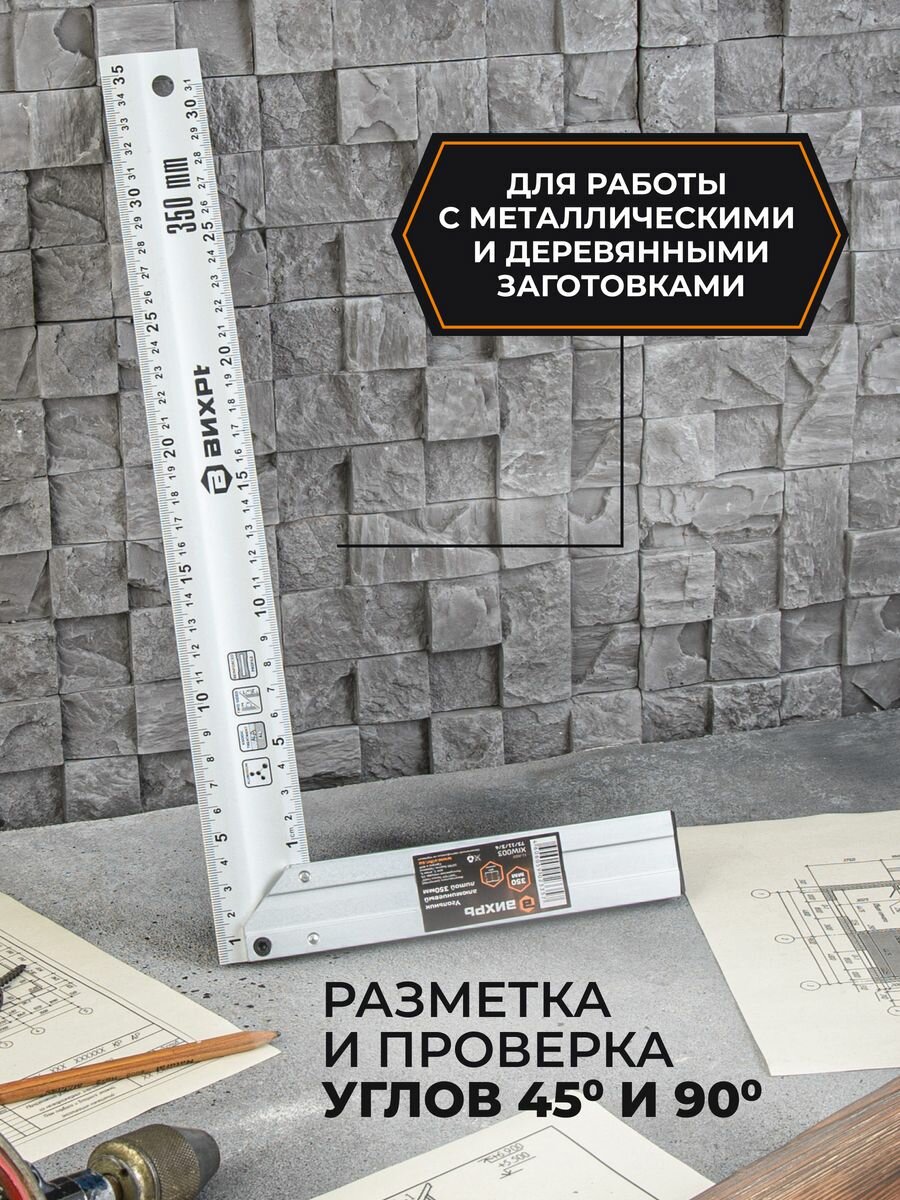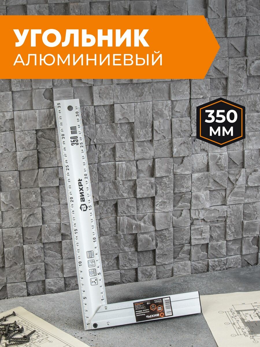 | Применение продукта | Алюминиевый литой угольник 350 мм ВИХРЬ 73/11/3/4 обладает небольшим весом и оптимальной прочностью для работы с металлическими и деревянными заготовками. Инструмент оснащается разметкой для определения расстояния и способен определять углы 45 и 90 градусов. |