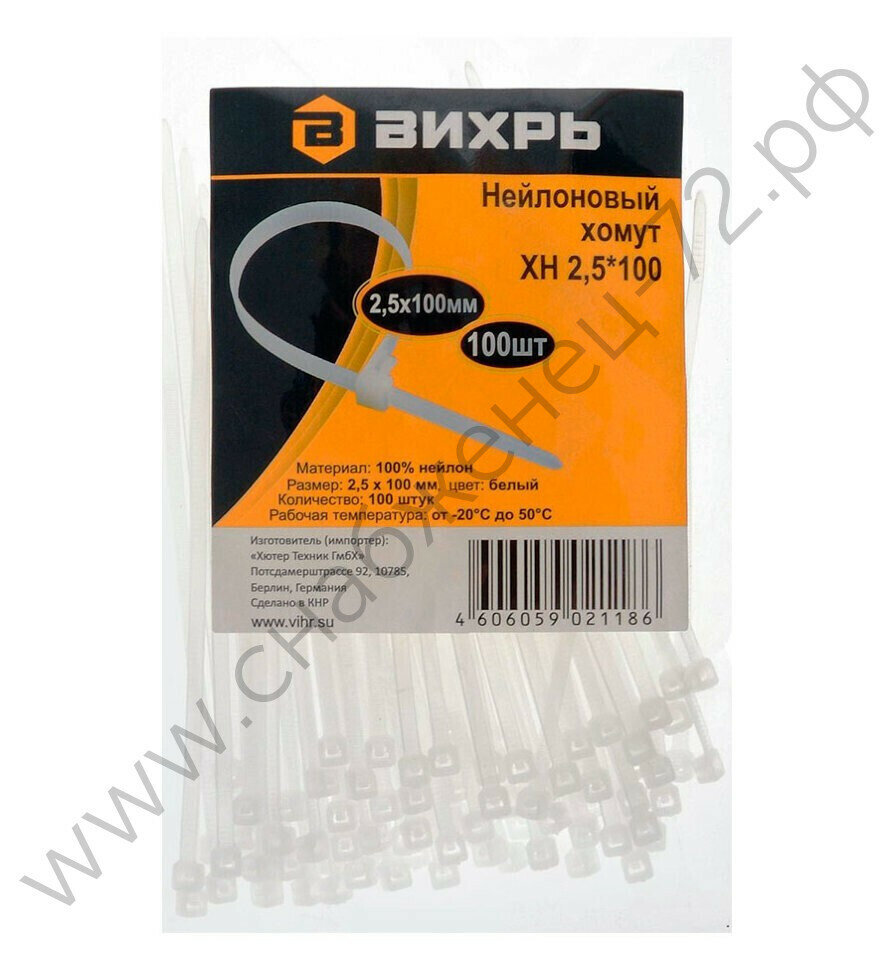 | Доп. наименование Водопад | Хомут Вихрь 73/9/1/10 нейлоновый 2,5*100 Б, 100 шт. |