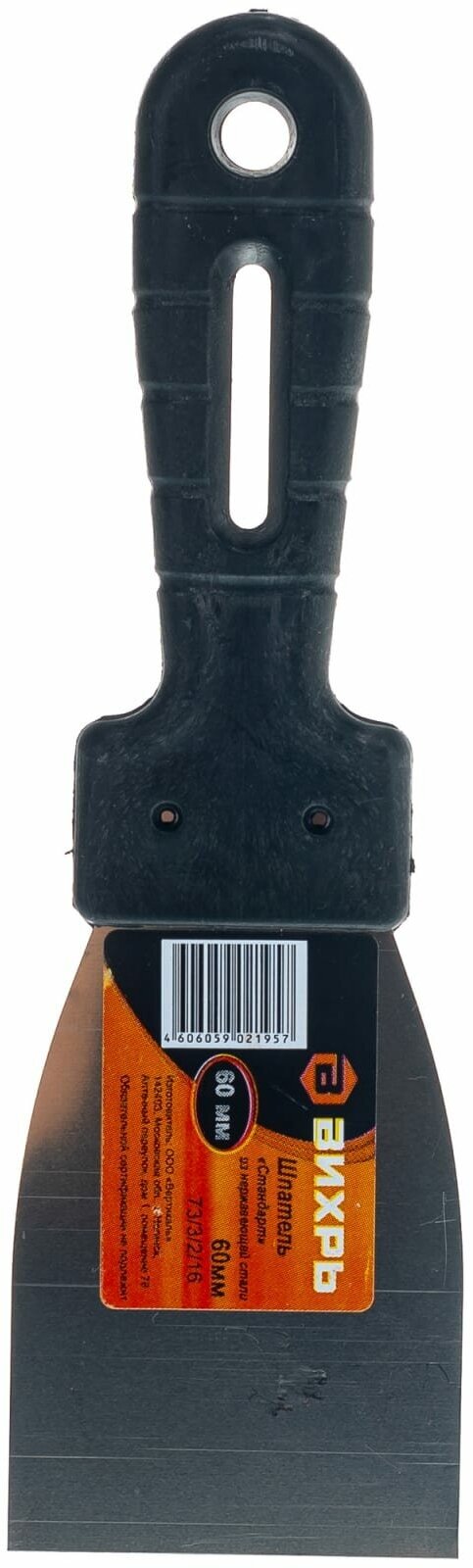 | Прочие особенности и свойства | Шпатель, нержавеющая cталь, пластиковая рукоятка 60мм Вихрь 73/3/2/16 используется для проведения косметического ремонта:,,затирания щелей;,заделки дефектов стен;,устранения отверстий от дюбелей. |