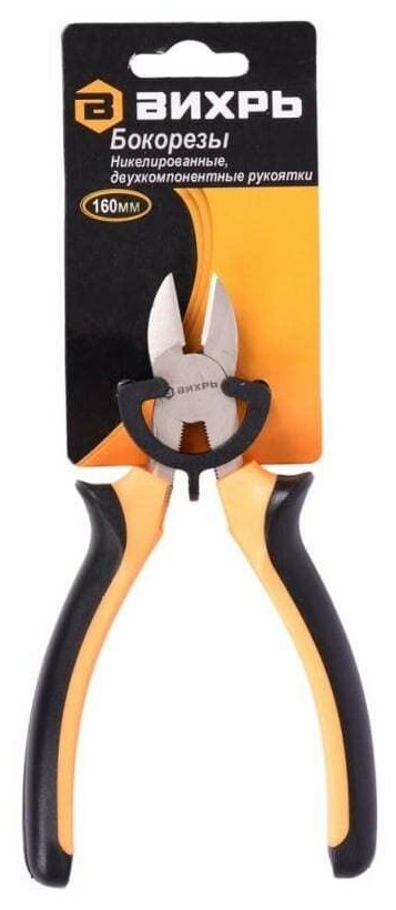 **Плоскогубцы комбинированные Вихрь** — инструмент, рабочая поверхность которого представлена двумя сплющенными фиксаторами с выемкой с насечками. Конструкция позволяет надежно удерживать детали разной формы, в том числе округлой. Такой инструмент незаменим при проведении любых слесарных или ремонтно-строительных работ. Им удобно изгибать жилы, проволоку, проводку, извлекать крепеж и многое другое. Рабочая часть изготовлена из стали, что делает изделие очень прочным. Чтобы плоскогубцы надежно удерживались рукой в процессе работы, ручки дополнены не скользящим каучуковым покрытием.
