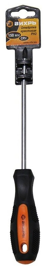 Отвёртка крестовая ВИХРЬ PH2 150мм для монтажа и демонтажа резьбовых соединений крестовой формы. Стержень из хромованадиевой стали (CrV), полностью закален и имеет хромоникелевое покрытие. Наконечник намагничен. Рукоятка эргономичной формы с отверстием для подвески, изготовлена из противоскользящего материала - двухкомпонентного пластика. Длина стержня отвертки: 150 мм.