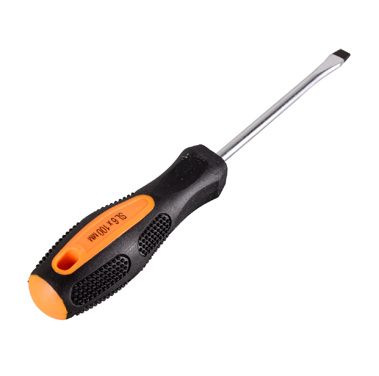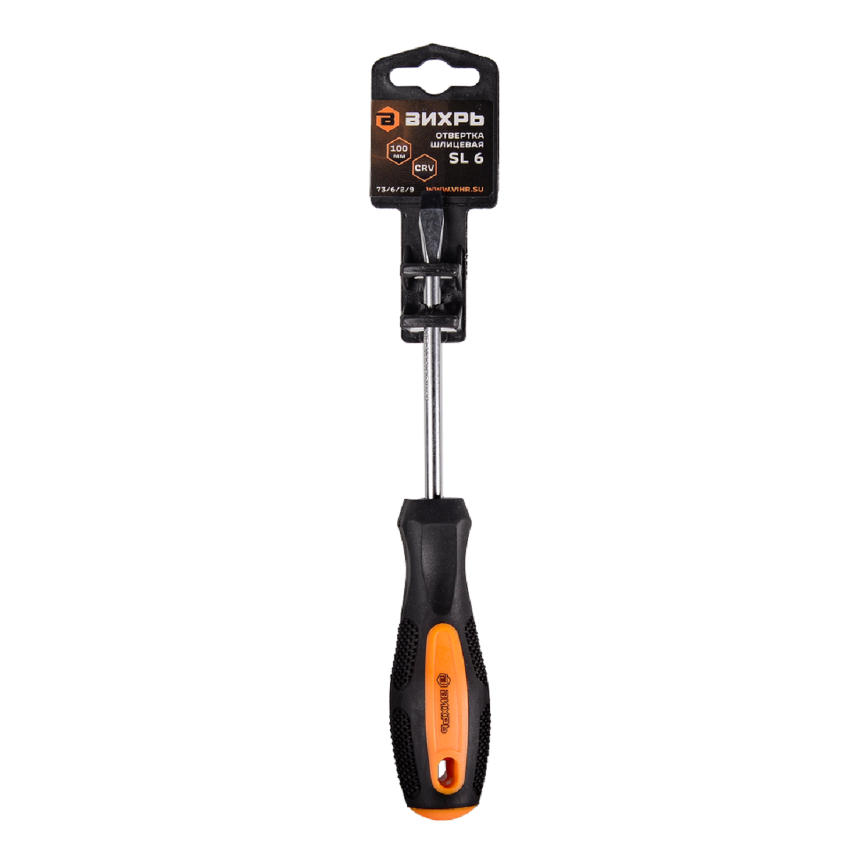 Отвёртка шлицевая ВИХРЬ SL6 100мм для монтажа и демонтажа резьбовых соединений. Стержень из хромованадиевой стали (CrV), полностью закален и имеет хромоникелевое покрытие. Наконечник намагничен. Рукоятка эргономичной формы с отверстием для подвески, изготовлена из противоскользящего материала - двухкомпонентного пластика. Длинный стержень обеспечивает доступ к заглубленному крепежу. Длина, мм: 100, Материал: Металл/2х-компонентный пластик.