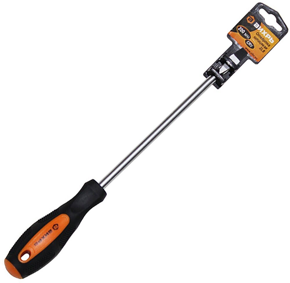 Отвёртка шлицевая SL8 с длиной стержня в 200 мм изготовлена из прочной хром-молибден-ванадиевой стали (CrMoV), что позволяет ей выдерживать большие нагрузки без потери своих характеристик. Удобная рукоятка, выполненная из резины и пластика, обеспечивает комфортную работу, а также способствует надежному захвату инструмента.