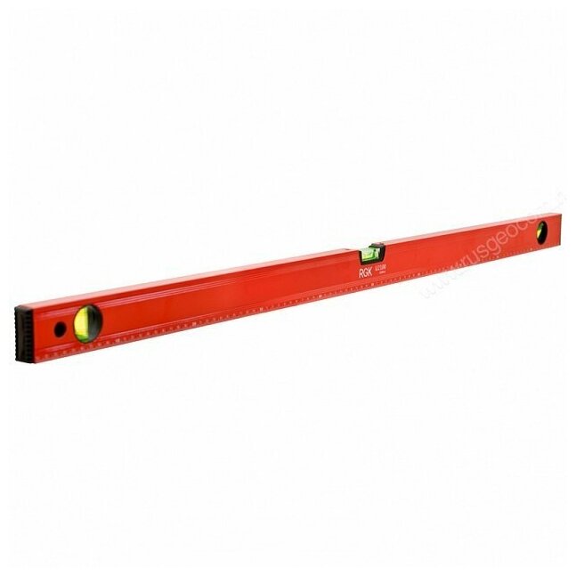 Строительный уровень RGK длиной 1 м. оснащен тремя ампулами, расположенными горизонтально, вертикально и под углом 45 град. Боковые пластиковые вставки защищают уровень при падении.