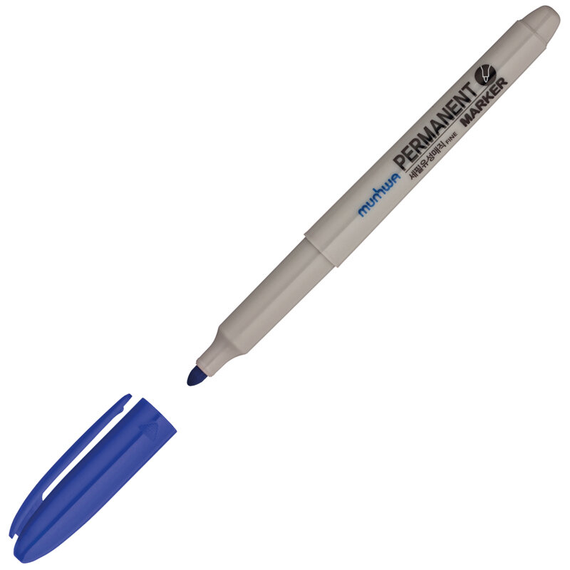 Перманентный маркер MunHwa - деликатная маркировка на всех типах поверхностей: резина, дерево, металл, пластик, ПВХ, бетон, кирпич, плитка, стекло, керамика, картон, текстиль, кожа.Круглый пишущий узел из акрила создает линии толщиной 1,5-2 мм. Яркий и насыщенный цвет чернил. Чернила на спиртовой основе. Цвет чернил - синий. Упаковка: картонная коробка по 12 штук. Корпус маркера изготовлен из прочного пластика эргономичной формы. Цвет колпачка соответствует цвету чернил.Чернила устойчивы к климатическим изменения (дождь, туман, солнце), не стираются и не выцветают в течение длительного времени (до 3-х лет в зависимости от эксплуатации промаркированного изделия), оставляют четкую и однородную линию, безопасны для использования и не содержат ксилол и толуол.