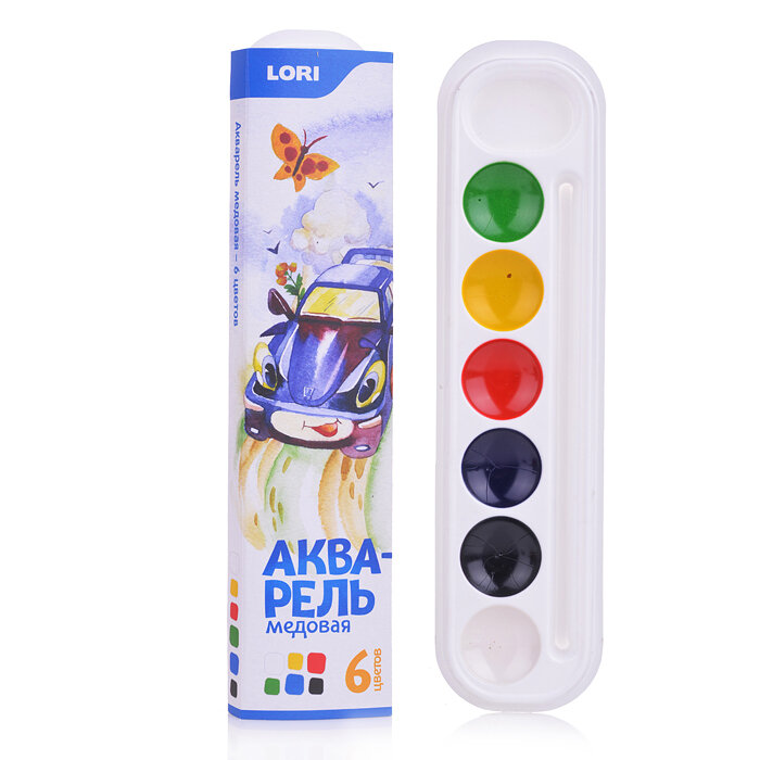 Краски акварельные медовые Lori без кисти 6 цветов (А-042)