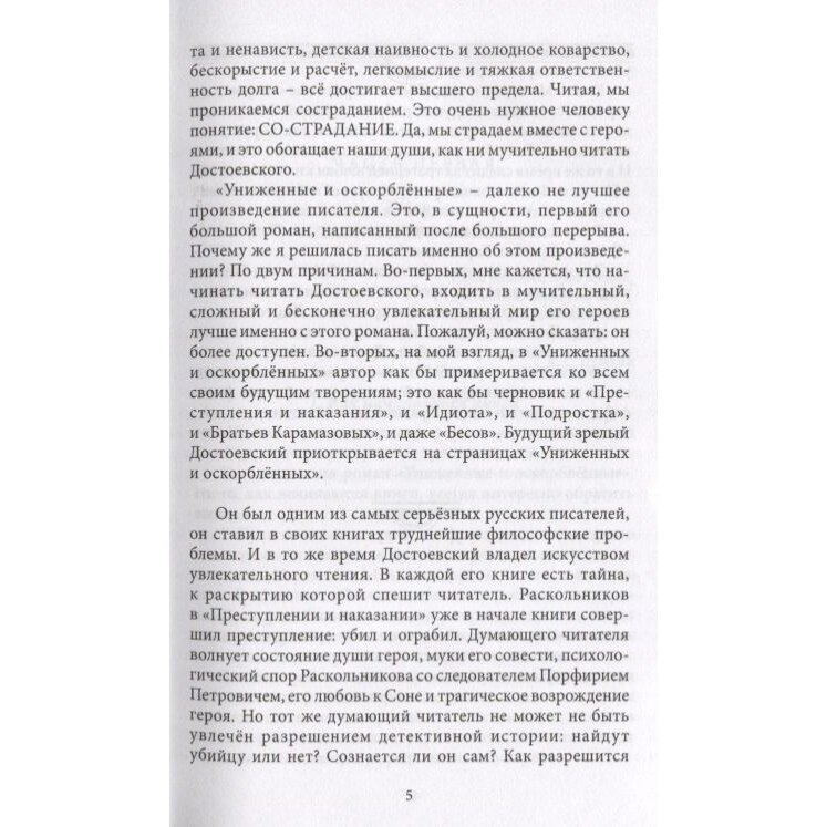 В книге анализ произведений тесно связан с пересказом. Я как преподаватель ничего нового из этой книги не узнала. Подойдет именно для школьников или тех, кто плохо помнит собственно текст произведений. Автор анализирует роман "Униженные и оскорбленные", включая в свой анализ "размышления" и о других произведениях: "Бедные люди", "Село Степанчиково", "Преступление и наказание", "Идиот", "Братья Карамазовы" - а также о биографии Достоевского и о его речи о Пушкине. "Предисловием" эта книга называется не потому, что её надо читать до знакомства с Достоевским, а потому, что роман "Униженные и оскорбленные" считается автором "предисловием" ко всему дальнейшему творчеству писателя. Надо сказать, что жанр "размышлений" предполагает определенную долю субъективности, несколько большую, чем при просто критическом анализе. Эта субъективность иногда хорошо заметна.