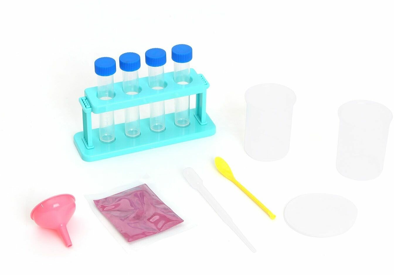 | Состав набора | иллюстрированная инструкция - 1 шт; колбы - 4 шт; пластиковые стаканчики - 2 шт; подставка для колб - 1 шт; пипетка - 1 шт; мерная ложечка - 1 шт; воронка - 1 шт; фиолетовый порошок сладкого картофеля - 1 шт; бумажные фильтры - 10 шт |