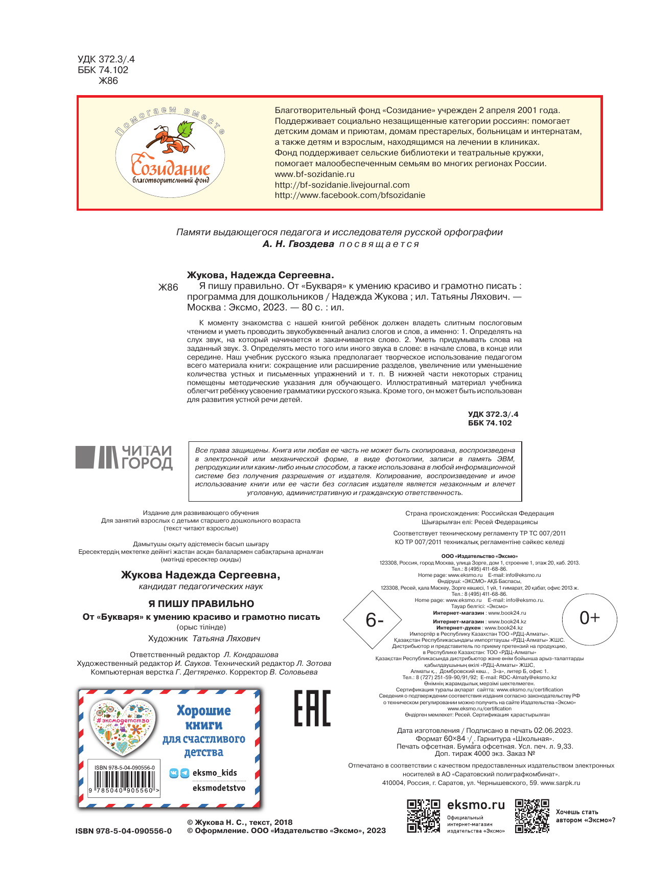 Я пишу правильно. От "Букваря" к умению красиво и грамотно писать (Жукова Надежда Сергеевна); ООО "Издательство "Эксмо", 2018