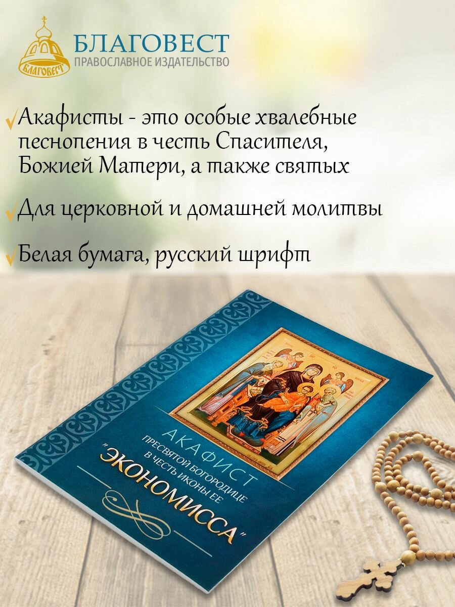 Акафист Пресвятой Богородице в честь иконы её "Экономисса". О чём думает читатель, когда нажимает на кнопку " оформить заказ" , чтобы приобщиться к акафисту? Для современного человека, что этот акафист? Написан, как и все святые тексты, на непонятном языке. Приходится вдумываться. Вчитываться. А будет ли вчитываться вечно занятый современный среднестатистический человек? На сегодня больше раздумий и вопрошаний , чём чётких ответов. И что москвичу или тем более москвичке до горы Афон, которая упоминается в Акафисте?