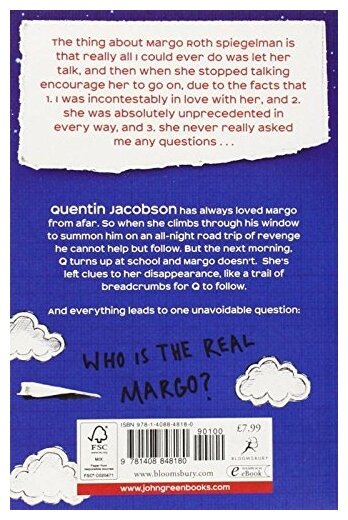 But the next day Margo doesn't come to school and a week later she is still missing. Q soon learns that there are clues in her disappearance… and they are for him. But as he gets deeper into the mystery - culminating in another awesome road trip across America - he becomes less sure of who and what he is looking for.