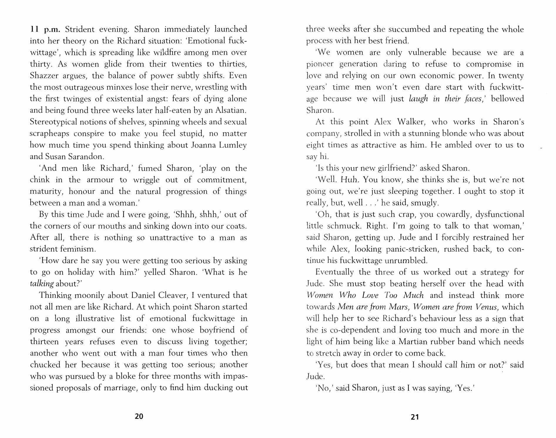 Непосредственная, но (в начале книги) несчастная Бриджит, которая сама себе не нравится, и что пьет она ей не нравится, и что она не модельной внешности ей не нравится, она пытается худеть, но ничего не выходит. И вот долгие мысли об этом, о том, какая она ужасная и как нужно меняться.