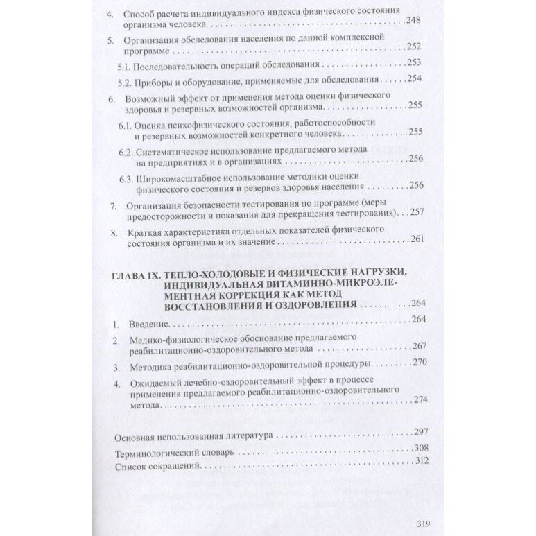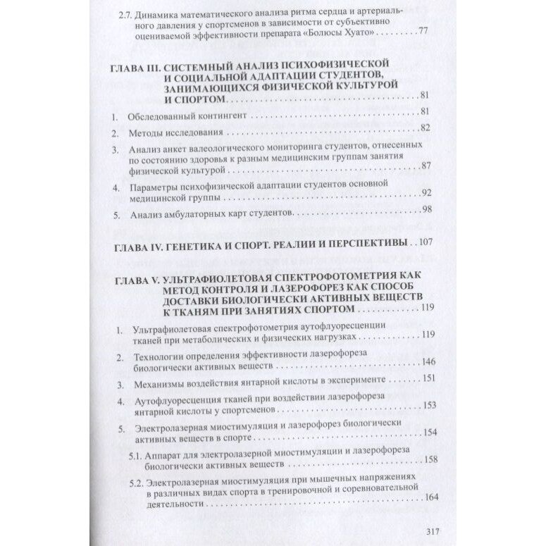 B монографии изложены инновационные медико-биологические технологии диагностики и коррекции физического состояния спортсменов в процессе тренировочной деятельности и проведения реабилитационных и оздоровительных процедур. На основе системного анализа психофизиологической и социальной адаптации лиц, занимающихся физической культурой и спортом, определены принципы составления тренировочных и оздоровительных программ. Выявлены мануальные, диагностические и реабилитационно-восстановительные возможности использования лазерофореза биологически активных веществ при занятии спортом. Установлена информационная значимость системы крови и других биологических жидкостей при умеренных и экстремальных тренировочных нагрузках в спорте высших достижений. C позиции теории функциональных систем дана характеристика комплексной программы оценки результативной деятельности c учетом психофизиологического состояния и функциональных возможностей организма спортсменов. Изложена реабилитационно-оздоровительная эффективность индивидуальных тепло-холодовых процедур и физических нагрузок с коррекцией микроэлементного состава крови и витаминообеспеченности при восстановлении и реабилитации спортсменов.