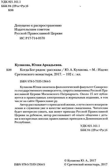 Когда Бог рядом. Рассказы (Ю. А. Кулакова); Издательство Сретенского Монастыря, 2017