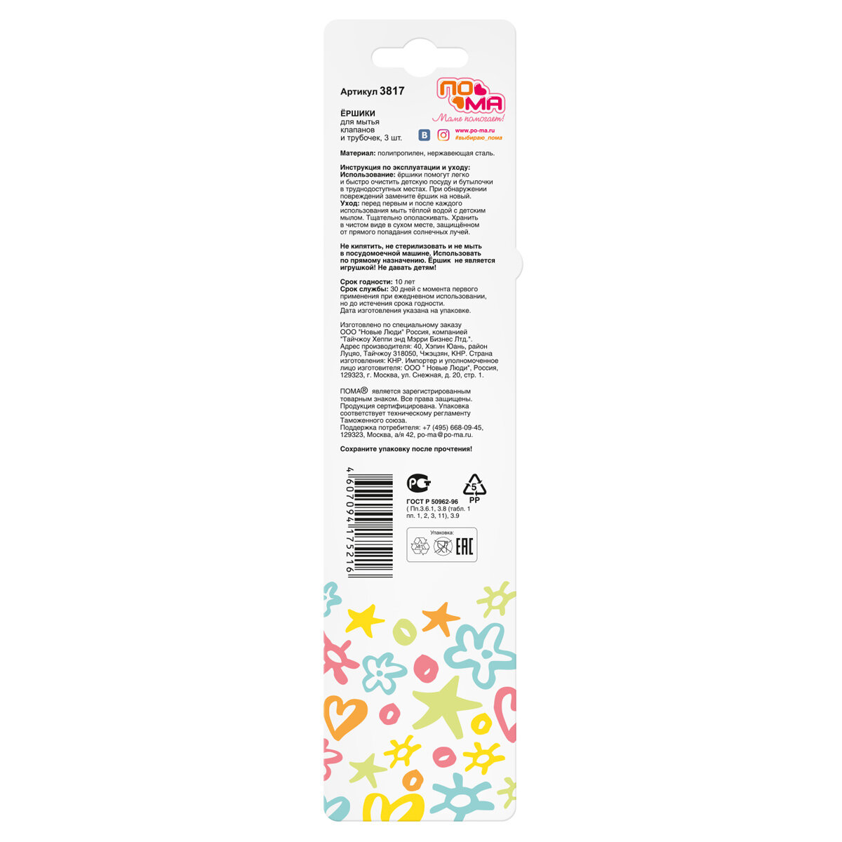 Набор ершиков для мытья трубочек и клапанов – лучший помощник для мам и пап, которые стремятся обеспечить своим новорожденным малышам безопасность и гигиену.Нержавеющая сталь, полипропиленовая щетина устраняют остатки пищи и бактерии, а их размер и удобная форма позволяют легко достигать всех уголков, обеспечивая идеальную чистоту. Специально разработанные щетинки эффективны для очистки узких и труднодоступных мест внутри трубочек и клапанов. Ершик имеет длинную, тонкую и гибкую ручку, которая позволяет легко проникать внутрь узких отверстий и удалить накопившуюся грязь, налет и другие загрязнения.Отлично подходит для очищения трубочек и клапанов детских поильников, сосок для бутылочек.Кухонные аксессуары имеют удобные отверстия на ручках для сушки и хранения. Набор выполнен из качественных и безопасных материалов и сертифицирован в России. Строго соблюдайте инструкции по эксплуатации на упаковках каждого изделия.Срок годности: 6 лет.