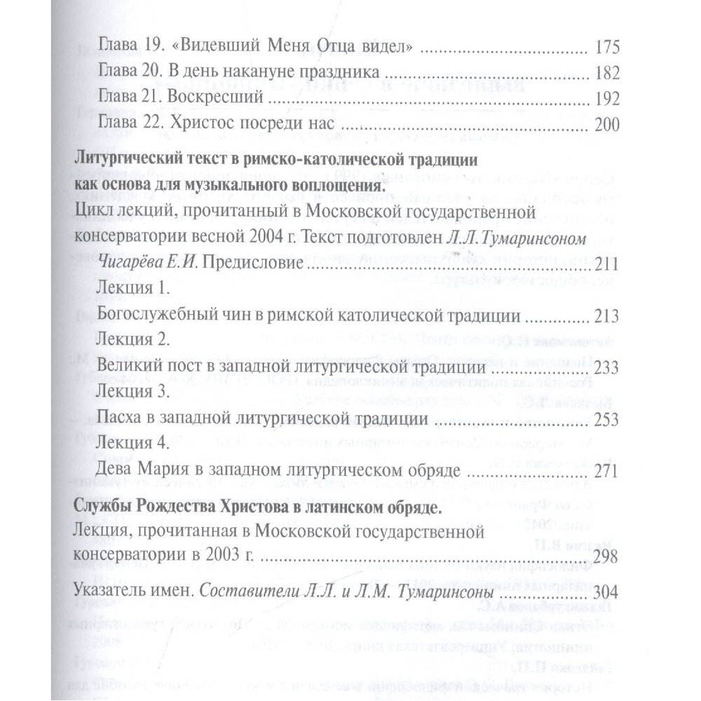 Настоящее издание продолжает серию трудов священника Георгия Чистякова (1953-2007), историка, богослова, общественного деятеля; оно включает в себя книгу "Свет во тьме светит (размышления о Евангелии от Иоанна)", а также тексты лекций и докладов, прочитанных в Московской государственной консерватории в 1998-2005 годах. Издание адресовано религиоведам-профессионалам, а также всем интересующимся историей культуры.