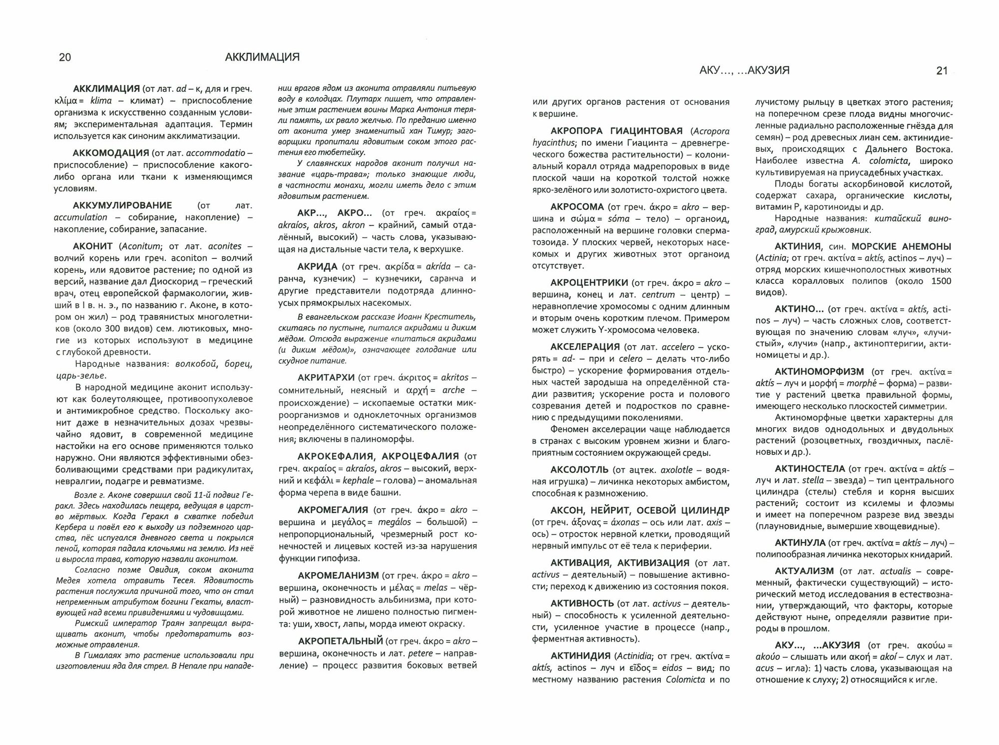 В словаре дано толкование и объяснение происхождения около 3500 часто употребляемых научных названий растений и животных, биологических и экологических терминов, прочно вошедших во многие языки, в том числе и русский. Словарь содержит перечень греческих, латинских и других иностранных слов, заимствованных при построении этих названий и терминов, и связанных с ними у разных народов легенд и преданий.