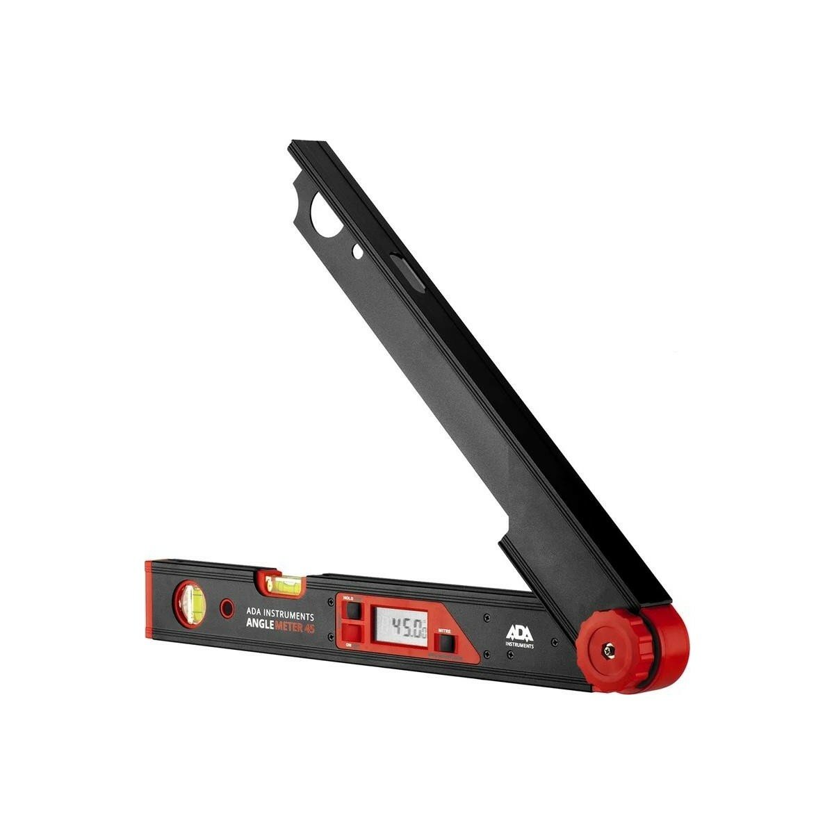 | Дополнительно | Электронный угломер ADA AngleMeter 45 предназначен для измерения углов при плотницких и столярных работах. Корпус прибора целиком выполнен из анодированного алюминия. Массивный профиль с ребрами жесткости толщиной 2,5 мм не боится ударов и падений. Измеренные значения и режимы вычислений отображаются на ЖК дисплее. Точность - ±0.1°., Контролировать начальное положение угломера (горизонт или вертикаль) можно с помощью пузырьковых уровней. Для точных измерений угломер можно быстро откалибровать нажатием всего двух клавиш., Для тех, кто работает с торцовочными пилами, подойдут режимы расчетов углов скосов (угла распила для торцовочной пилы), например, при стыковке плинтусов в углах помещения. Включив специальный режим расчета, нужно только измерить угол помещения, а угломер сам рассчитает необходимый угол наклона и поворота торцовочной пилы., С помощью электронного угломера ADA AngleMeter 45 можно не только измерять, но и переносить углы на заготовки. Ориентируясь по цифрам на ЖК дисплее можно раскрыть угломер на требуемое значение угла и с помощью крепежного винта зафиксировать его., Приложив детали к плечам угломера останется только закрепить их положение., Для удобства работы есть режим “HOLD” - удержания результатов на дисплее и подсветка. В комплект прибора входит мягкий кейс с ребрами жесткости для хранения и безопасной транспортировки угломера к месту работы., ADA AngleMeter 45 — точный, легкий, прочный инструмент с набором функций для быстрых расчетов., Функции, Измерение углов, Расчет горизонтального угла распила одностороннего скоса, Расчет угла распила двустороннего скоса, Вычисление приложенного угла к измеряемому до 180, Автоматическая калибровка |