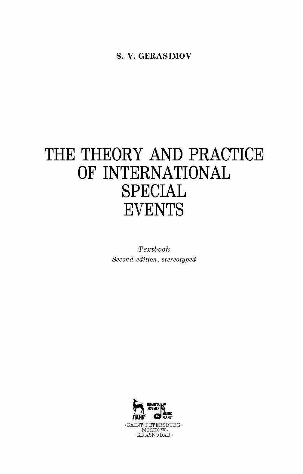Теория и практика международных специальных событий. Учебное пособие (С. В. Герасимов); Издательство «Планета музыки», 2018