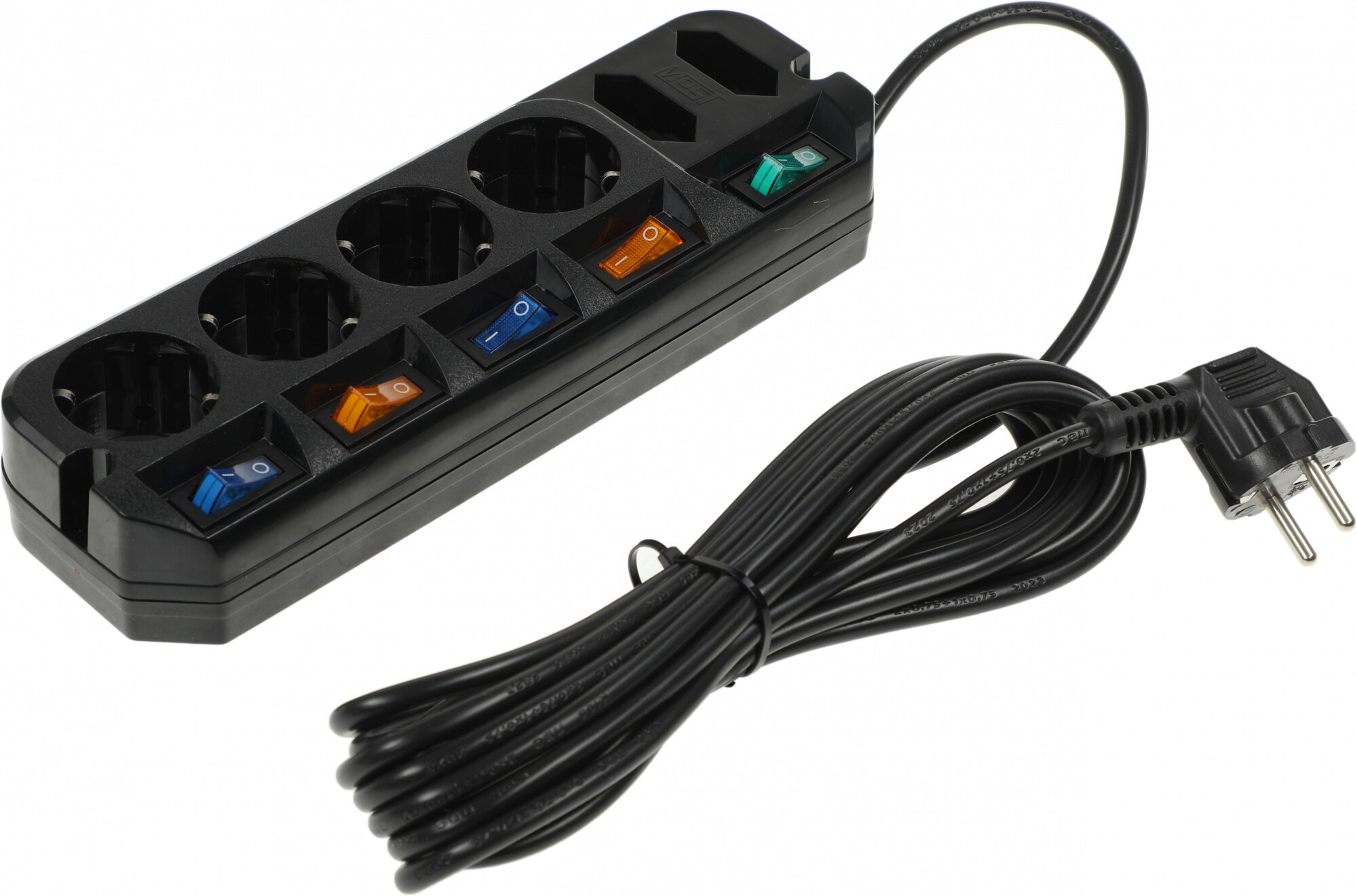 Удлинитель Most А10 предназначен для подключения бытовой техники к сети электропитания., У каждой из четырех евророзеток имеется мощный (16A) индивидуальный выключатель,который обеспечивает удобство обращения с электропитанием и экономит Ваше время. Две узкие розетки имеют общий выключатель., Удлинитель Most A10 обеспечивает удобную эксплуатацию и подключение техники мощностью до 2.2кВт к розетке.