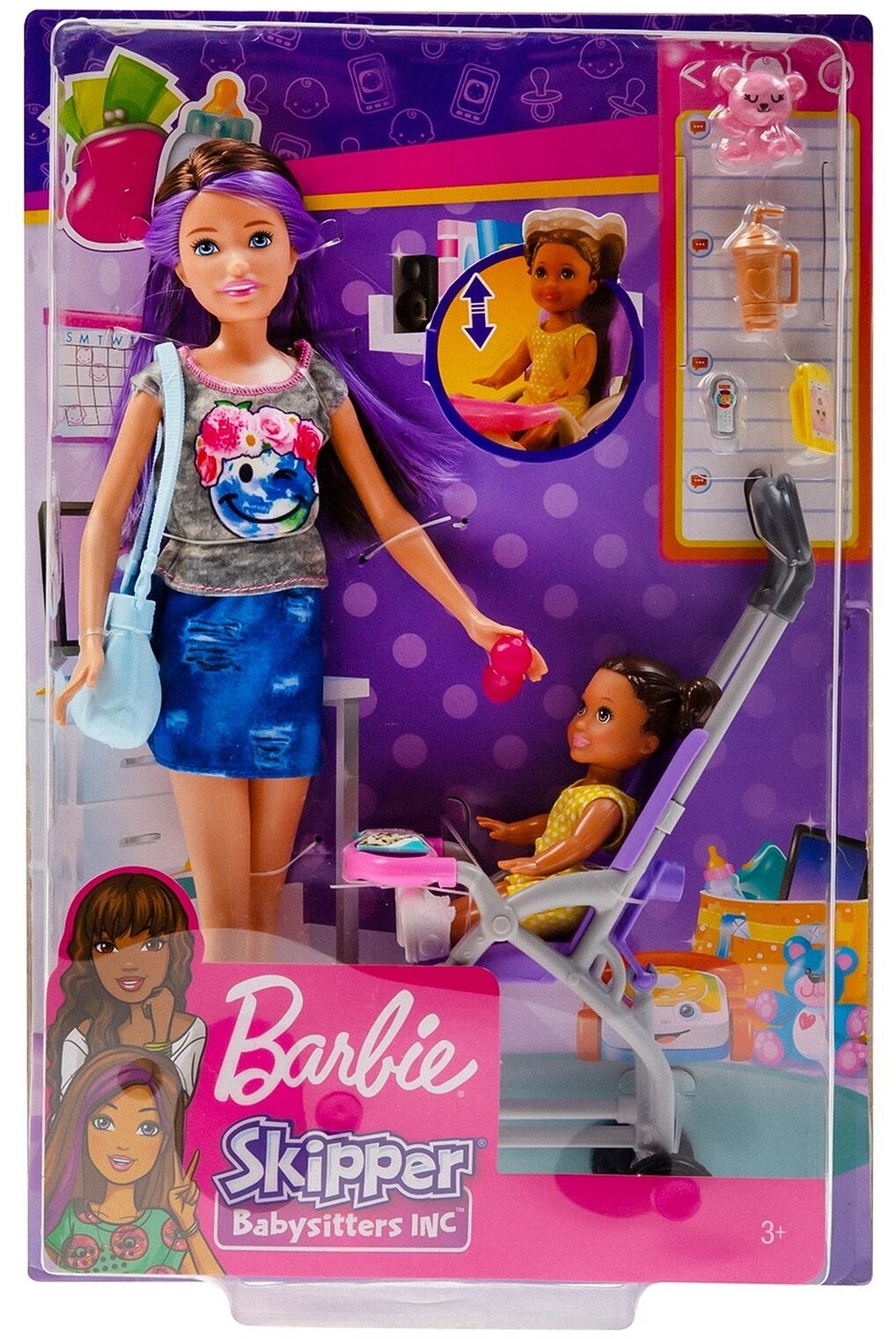 Барби – отличная няня для своей младшей сестрёнки Скиппер, ведь она очень ответственная и заботливая. Данный игровой набор позволяет девочке разыграть множество сценок, даёт возможность разобраться в различных ситуациях из повседневной жизни, научит заботиться о младших.