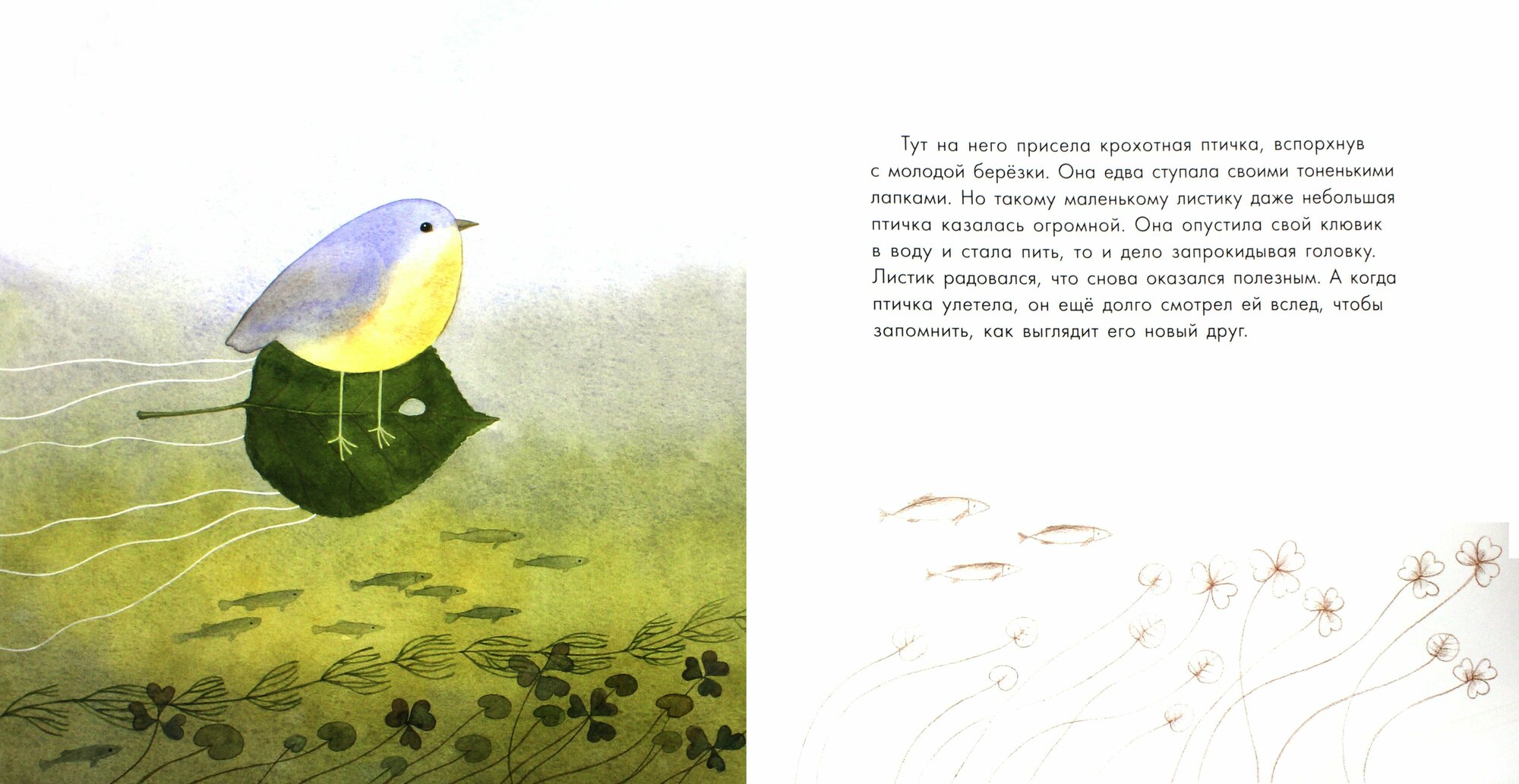 Я не понимаю, почему книги этой серии почти не рецензируются. Может, пугает слово «терапия»? Так почти любая книга-это своего рода терапия, ведь каждая чему-то учит. Данная книга учит не бояться перемен. Здесь нет ничего назидательного, всё рассказано на примере листика, который отправился в путешествие, оторвавшись от ветки. Замечательная сказка! Я обожаю все книги серии «Сказкотерапия» не только за хороший текст (а его в книге немало), но и за оформление. Очень плотные мелованные страницы, удобный формат. На каждом развороте слева-иллюстрация, справа-текст.