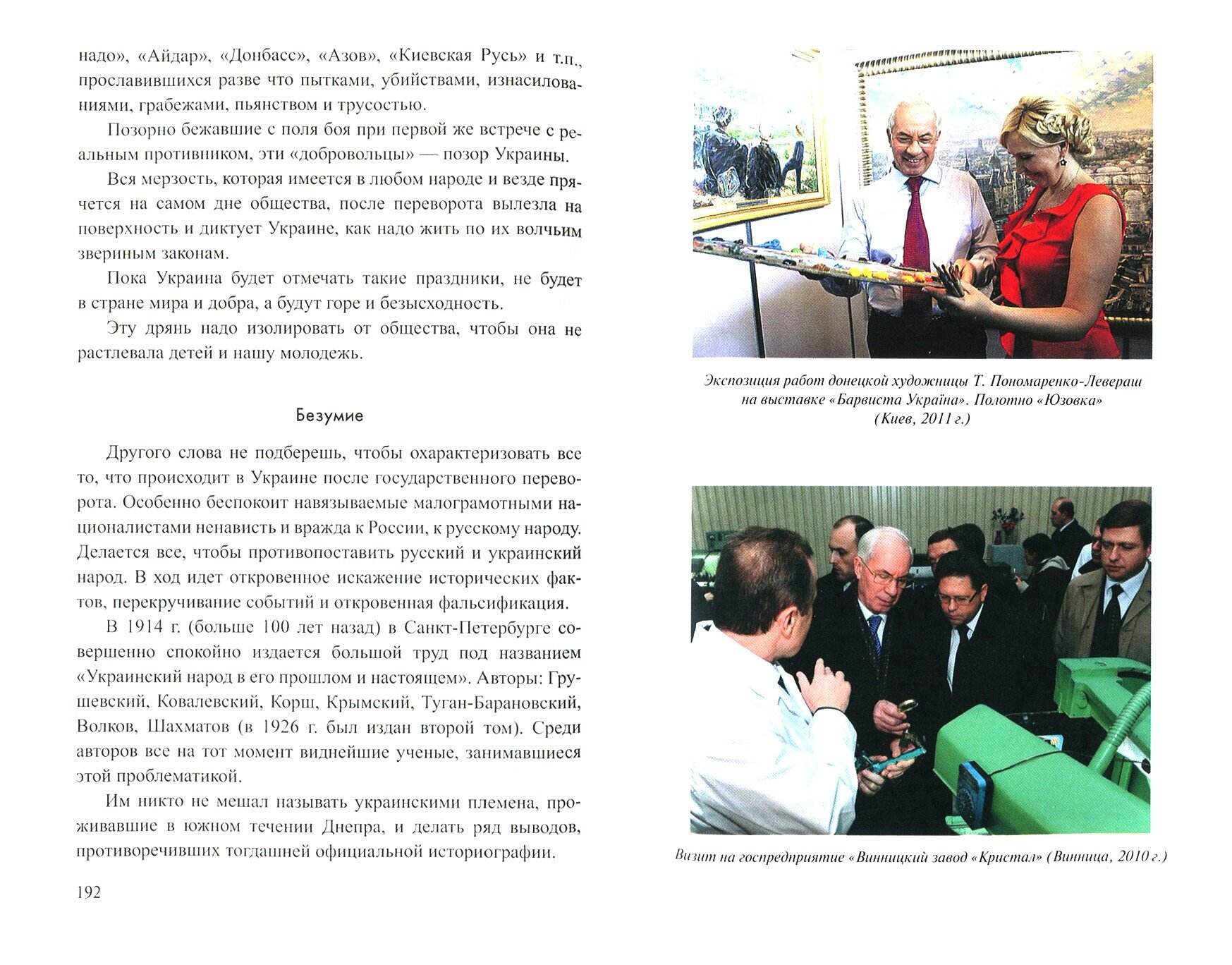 Автор ведёт с читателем разговор с цифрами и фактами в руках, особое внимание уделяя нынешнему положению дел, рассматривая Украину как неотъемлемую часть единого с Россией культурного, экономического и политического пространства.