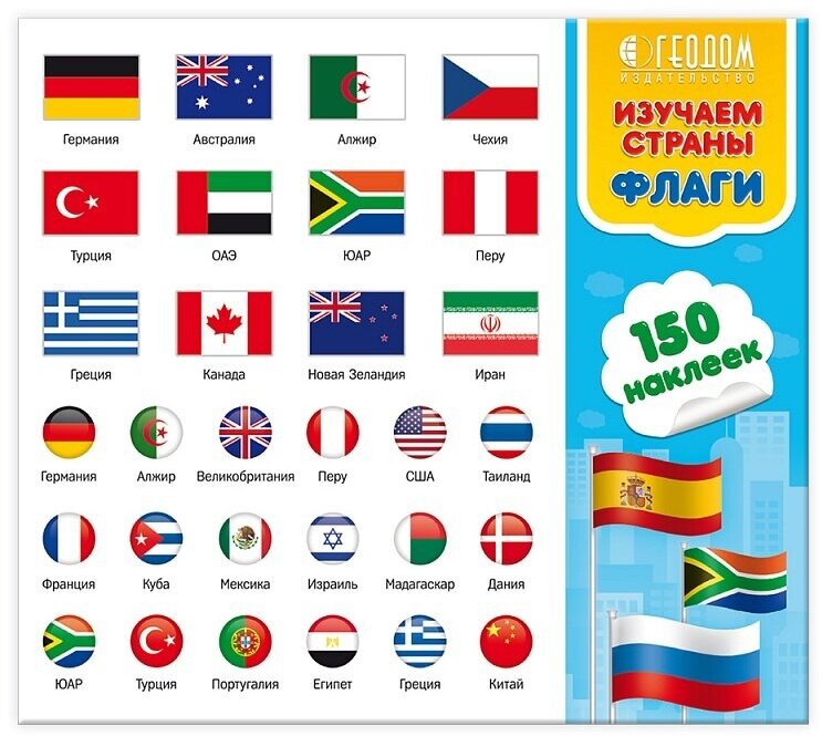 Наклейки в папке "Изучаем страны и флаги" 150 шт.; Геодом, 2018