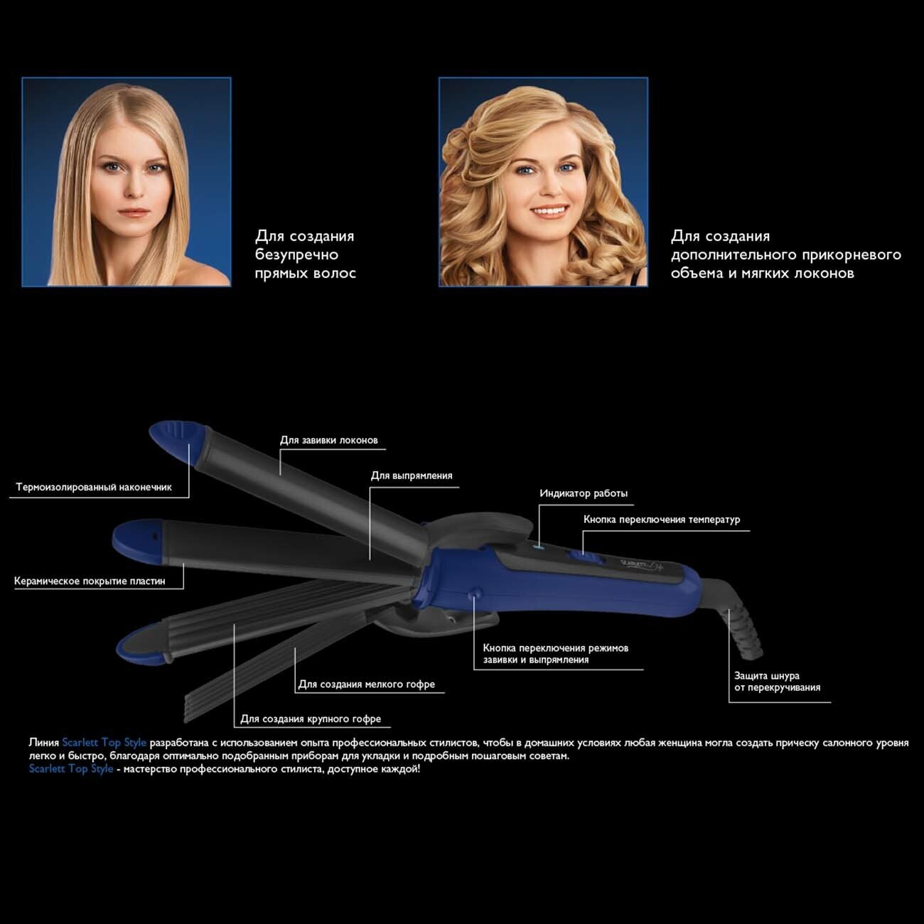 С мультистайлером Scarlett создавать новый образ можно хоть каждый день. Устройство соединяет в себе щипцы для завивки локонов, плойку для выпрямления и гофре для создания объёма и затейливых волн.