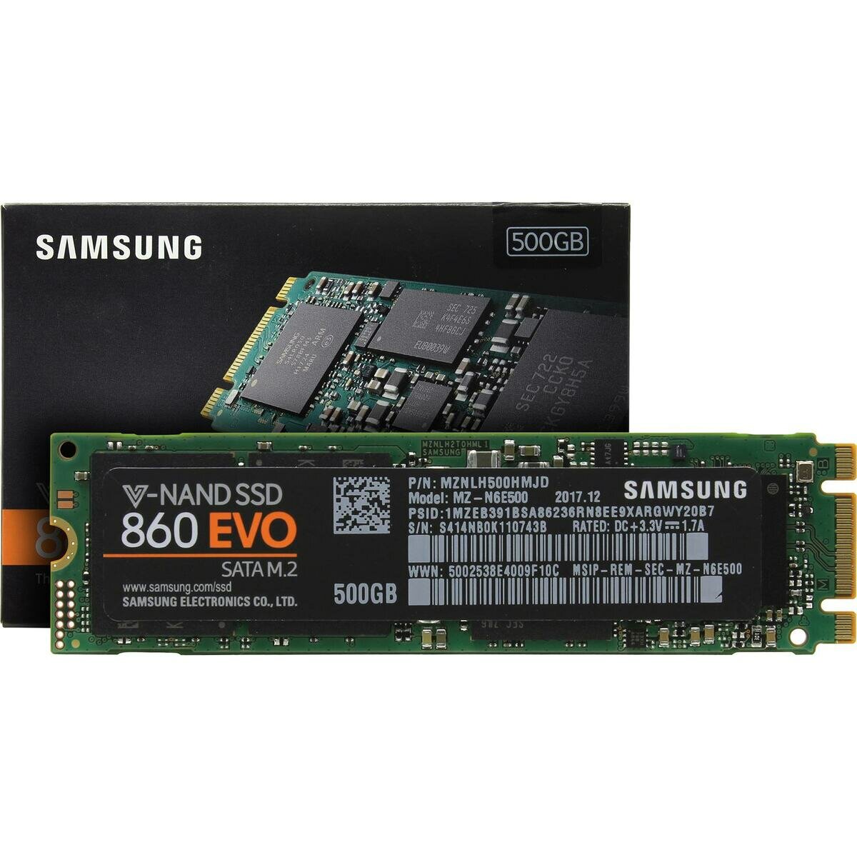 SSD накопитель SAMSUNG 860 EVO 500Гб M.2 2280 SATA III NVMe MZ-N6E500BW