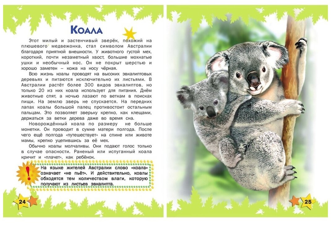 Книга производит очень неплохое впечатление-плотная яркая обложка, размер-примерно с стандартную тетрадь, бумага плотная, рисунки очень реалистичные, по одному на странице. Но подборка обитателей данной книги очень странная-акула, попугай, бегемот, белка,белый медведь, бобр,броненосец, варан, верблюды-2, гепард, горный баран,дельфин, енот,жираф, зебра, кенгуру, кит, косатка, коала. крокодил, лев, шимпанзе, хамелеон, черепаха, фламинго, тигр, тюлень, рысь, слон,пума, пеликан, панда, олень, носорог, муравьед,морская игуана, морж, лиса, лось.