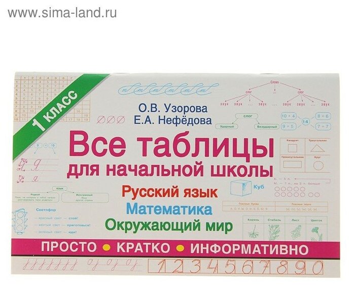 Сервис сравнения цен СкидкаГИД предлагает сравнить цены на товар «Книга: Все таблицы для 1 класса. Русский язык. Математика. Окружающий мир. (Нефёдова Елена Алексеевна, Узорова Ольга Васильевна); Сова. Малыш (Обучающая и развивающая литература), 2019»