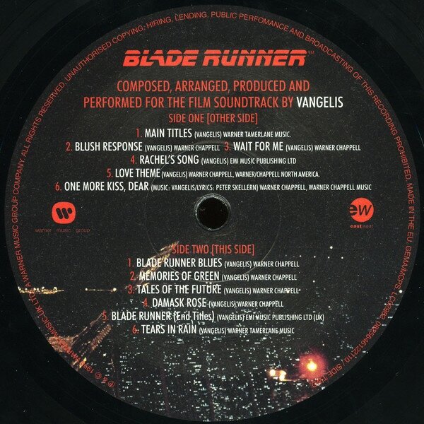 "Blade Runner" - саундтрек к одноименному фильму (1982 года), представленный на виниловом диске. Саундтрек представляет собой темное мелодичное сочетание игры классических инструментов и синтезаторов, повторяя футуристический настрой самого фильма. С премьерой фильма было выпущено 2 официальных альбома с саундтреками из фильма и новыми музыкальными композициями в этом же жанре.