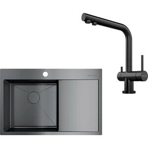 Кухонная мойка Omoikiri Akisame 78 L GM 4973099 с крылом и переливом. Цвет: вороненая сталь. Мойка для кухни обладает вместительной чашей и площадкой для смесителя. Превосходно сочетается с любым современным интерьером кухни. Мойка выполнена из японской высококачественной хромоникелевой нержавеющей стали с покрытием PVD, устойчивым к появлению царапин. Толщина металла составляет 1,2 мм. Благодаря уникальному защитному покрытию Crystal Shine уменьшается образование налета от воды и грязи на поверхности.