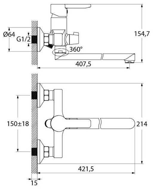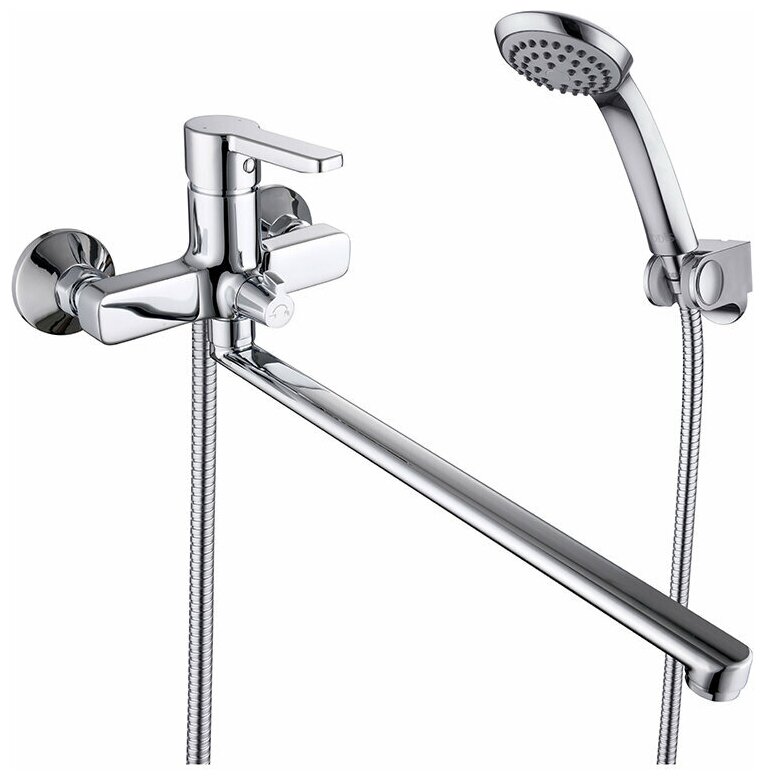 Однорычажный смеситель Iddis Sena SENSBL2I10 с длинным изливом, устанавливается на стену в ванной комнате и монтируется на эксцентриках, которые прилагаются вместе с уплотнительными прокладками и металлическими отражателями. Литой излив легко поворачивается вокруг своей оси, за счет чего его можно установить в любое удобное положение. Встроенный пластиковый аэратор уменьшает количество брызг и снижает расход воды. Надежный и удобный керамический переключатель обеспечивает плавный ход при переключении с крана на душ. Душевой гарнитур входит в комплект.