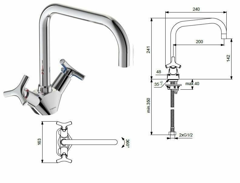 Смеситель VIDIMA Trinity устанавливается на кухонную мойку врезным способом, подходит для раковины в ванной.