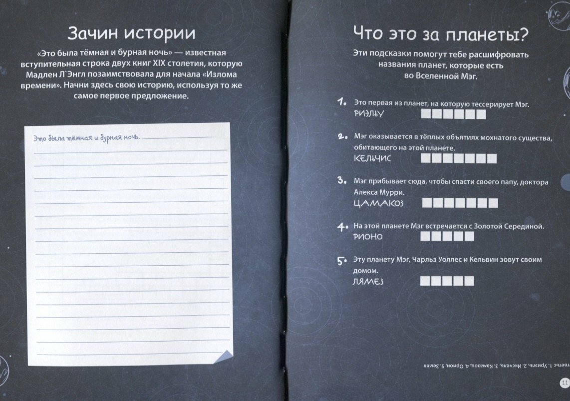 Приобрела эту книгу - Дисней Излом времени "Думай, твори, действуй" вместе с дневником из этой же серии. Если дневник больше расчитан на фантазию и творчество, то данная книга заставляет серьёзно подумать. В этой книге вы найдёте много различных заданий по физике, математике, логике и даже не обойдётся без таблицы Менделеева. Данная книга намного интереснее обычных сборников задач или кроссвордов, так как содержит в себе задания на разные темы. А составленна она так, что ребёнок не устаёт от выполнения однотипных заданий.