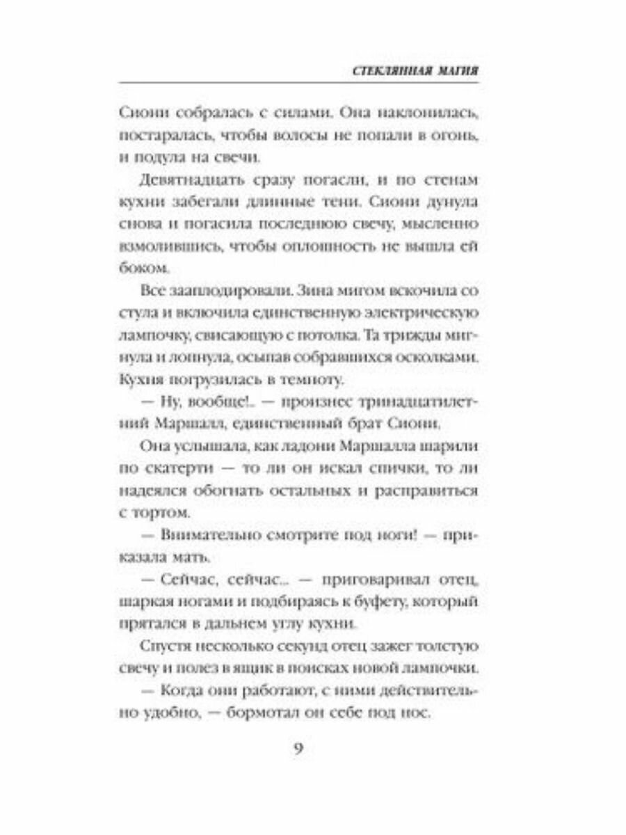 "Вы - свеча, которую не задуешь, и сейчас вас видно из самых тёмных уголков мира. А те, кто там обитает, не выносят света." Эмери Тейн, "Стеклянная магия" --- Мне очень понравилась цитата из книги, написанная выше. Действительно, есть настолько яркие люди, рядом с которыми и правда боишься ослепнуть - настолько ярко они блестают. Именно такой блистательной, как заметил Тейн, и является главная героиня. Она волевая, непокорная, ответственная и храбрая. Её характер прекрасно сочетаются с её внешностью - хрупкая, но крепкая, ярко-рыжие волосы, веснушки. Мне очень нравится образ, придуманный автором. Но вот чего я действительно не дождалась - раскрытие личности Тейна. Я ждала, что он будет раскрыт в полной мере, но нет, пока этого не произошло. Сюжет книги захватывающий, плавный. Некоторые моменты были легко предугадываемыми. Любовная линия развивается, но не совсем так, как я ожидала. Хотя задумка и замечательная, но первая часть трилогии показалась мне сюжетно более захватывающей. Тем не менее раскрываются удивительные подробности о магии, которая описана в книге. Появляются новые вопросы, на которые ещё предстоит найти ответы. Я с нетерпением жду выхода заключительной части