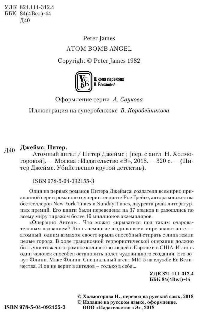 Книга: Атомный ангел (Питер Джеймс); ГрандМастер, 2018
