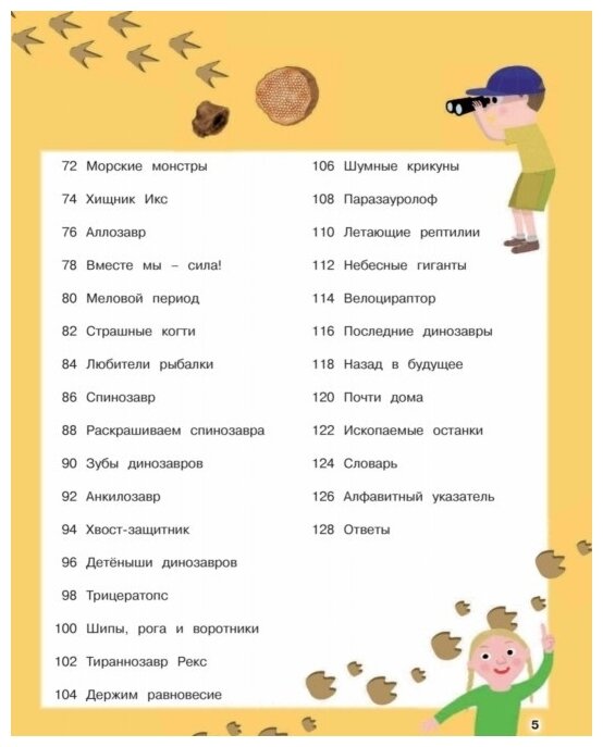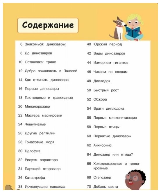 Перелистывая страницы книги, можно узнать, что означает слово "динозавр", сколько видов динозавров существовало на планете, как они жили, почему вымерли и остались ли на Земле их ближайшие родственники. Яркие красочные иллюстрации позволят представить внешний облик динозавров, их повадки, характер и узнать много интересного. Захватывающие факты даются в виде коротких блоков - такая подача информации облегчает ее восприятие. В конце книги имеется словарь сложных терминов и понятий, алфавитный указатель и ответы.