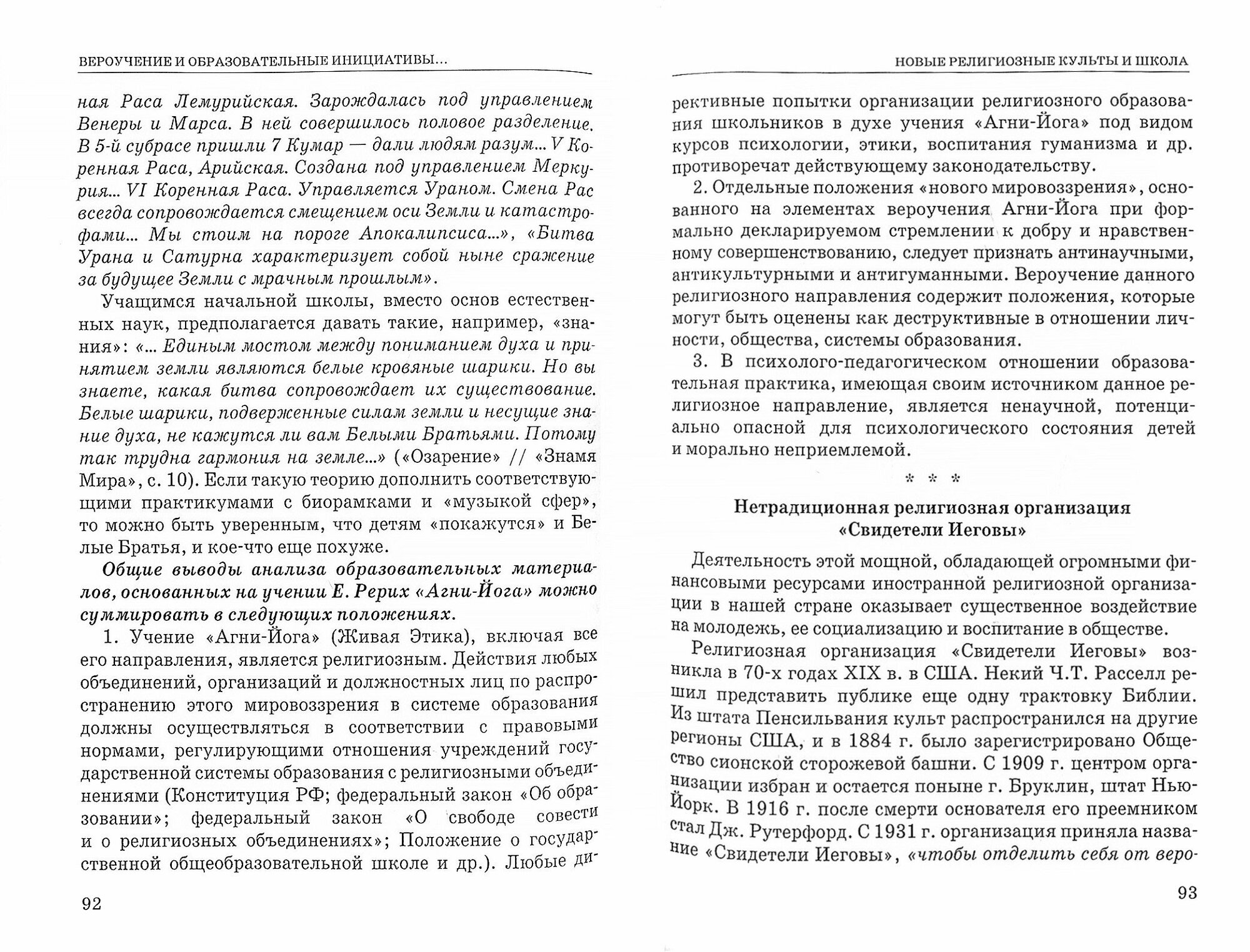 В книге освещается тема новых религиозных объединений и культов, в том числе деструктивной направленности, их деятельности в российском обществе и системе образования. Пособие содержит теоретические религиоведческие разделы, материалы экспертных заключений о вероучении и деятельности новых религиозных объединений и культов, рекомендации для руководителей образования, методические разработки по теме для учителей.