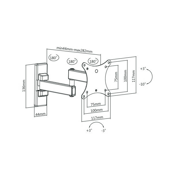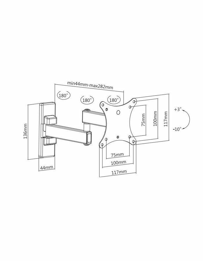 | Дополнительно | UM875 - для использования с телевизорами диагональю 13"-27", весом до 20 кг. Возможен наклон до 10 градусов. подъем до 3 градусов. Поворот влево и вправо на 90 градусов. Расстояние телевизора от стены 44-282 мм. VESA 75x75, 100x100 |