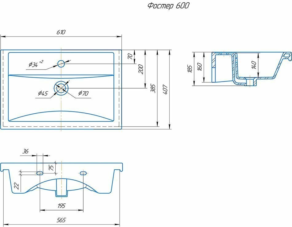 - Предусмотрено отверстие под смеситель и слив-перелив.