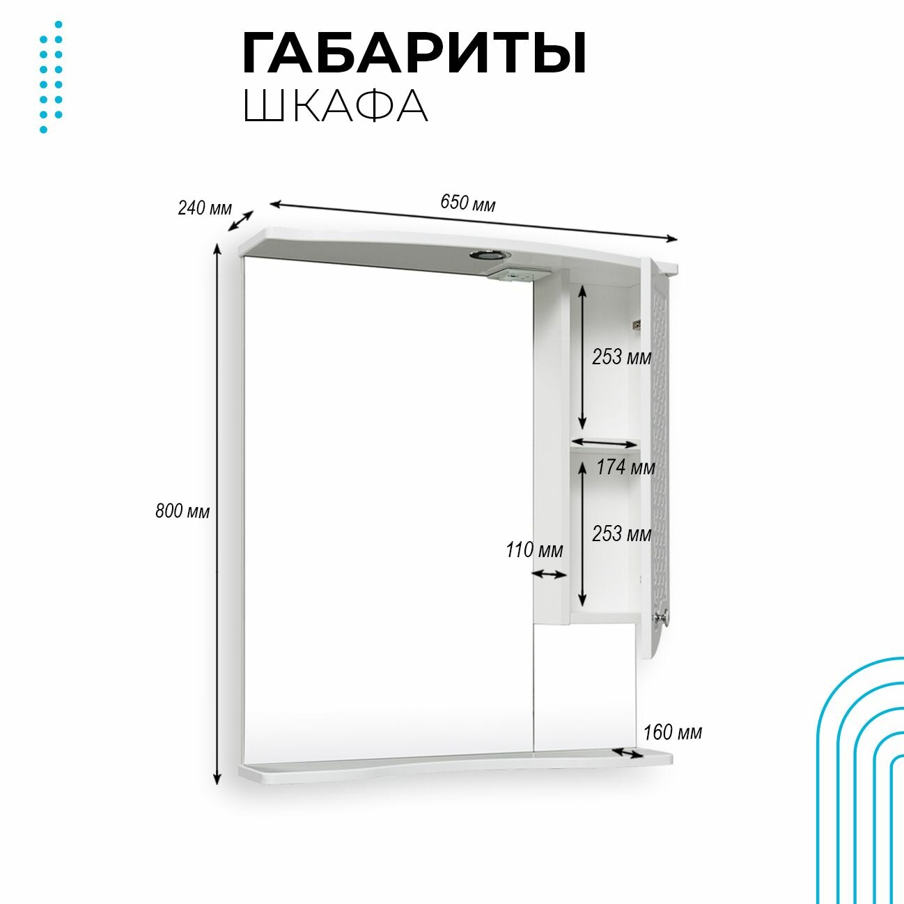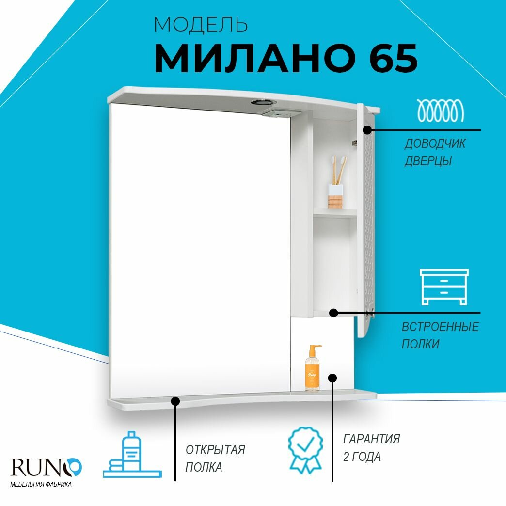 Зеркальный шкаф для ванной Runo Милано 65 белый