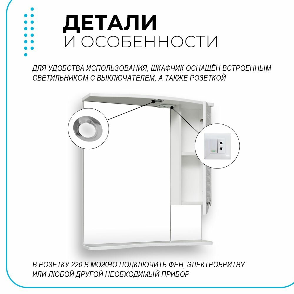 | Оснащение зеркала | С подсветкой, со шкафом, с розеткой, с выключателем, с полкой |