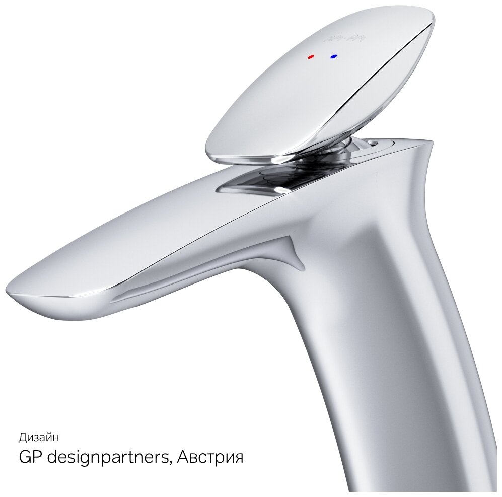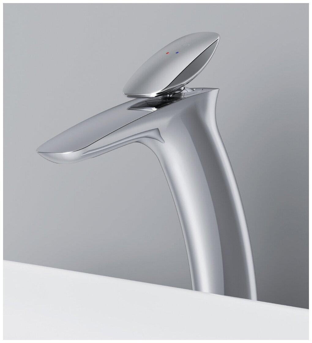 - Высокий, плавно изогнутый корпус обеспечивает комфортное использование с раковиной любой высоты.