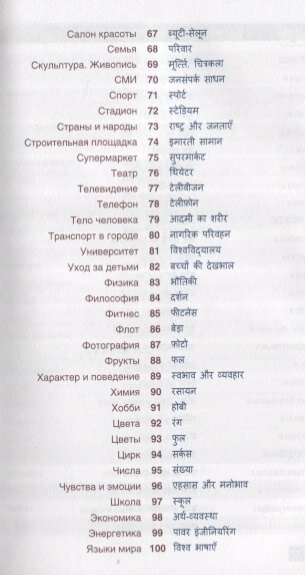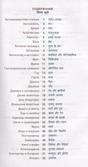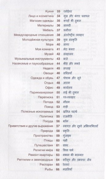 В словаре содержится 5 000 русских слов и 5 000 слов на хинди, сгруппированных по 100различным темам, включающим около 400 разделов: автомобиль, армия, архитектура, аэропорт, банк, больница, время, географические названия, город, деньги и т. д.В словаре даётся фонетическая транскрипция всех слов на хинди. В конце словаря приведены два указателя русских слов и слов на хинди, содержащих номера тем, в которых они встречаются.Алфавитные указатели всех русских заглавных слов и заглавных слов на хинди позволяют при необходимости использовать данный словарь как обычный (двуязычный) словарь. Является прекрасным приложением к любому самоучителю, учебнику, курсу иностранного.