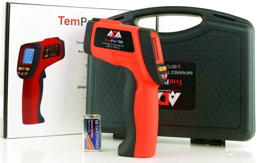 Пирометр ADA TemPro 700 компактный инфракрасный пирометр пистолетного типа, максимально удобен в применении. Простое измерение — одним нажатием на «курок». Лазерный целеуказатель позволяет выполнять быстрые, точные измерения, «точно в цель».