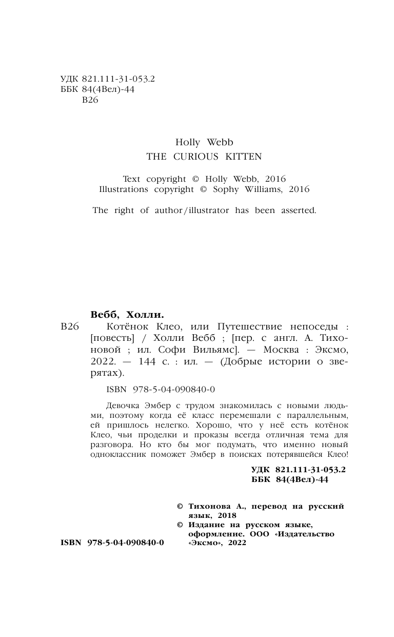 Котёнок Клео или Путешествие непоседы (Холли Вебб); Эксмо, Эксмодетство, 2018